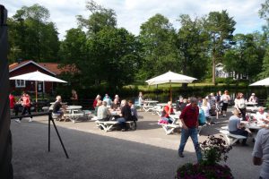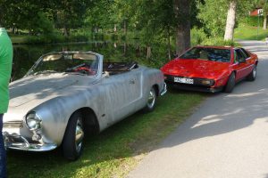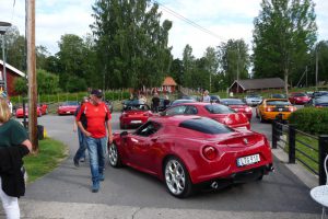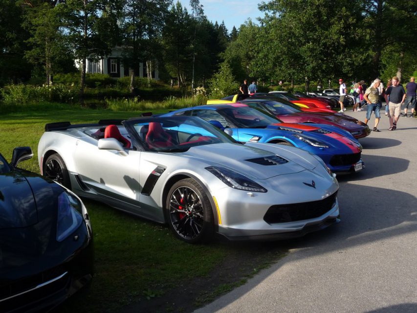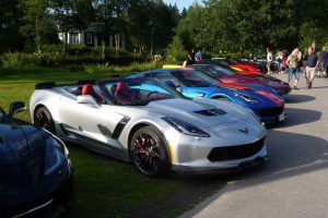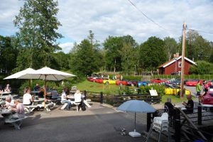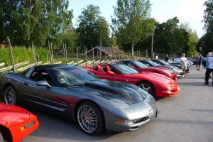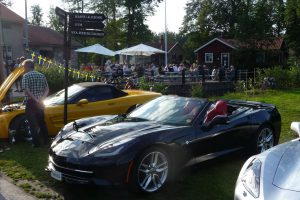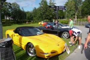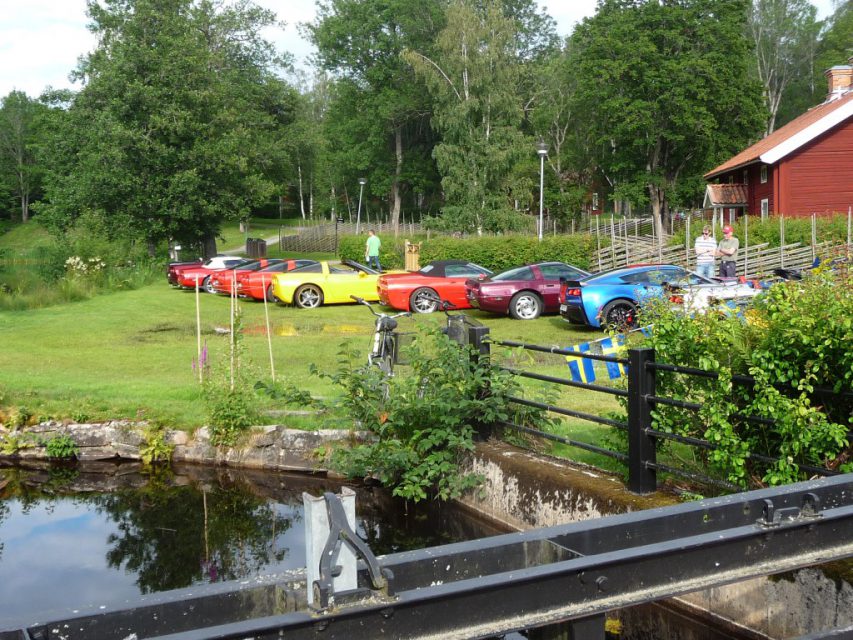 Varje torsdag på sommaren är det bilträff på det vackra Högbo Bruk som ligger 5 km norr om Sandviken. De som är ständigt återkommande bilklubb är bl.a.  Lotus och Mustang. Det var våra kontaktpersoner i Gästrikland, Örjan Björklund och Krister Larsson som drog ihop CCS för att delta denna tjusiga torsdag i juli. Vi anlände i god tid för att få en fin plats vid dammen. Många olika fordon syntes på uppställningsplatsen, Lotus, AC Cobra, Mustang, Alfa-Romeo, BMW, Mercedes, VW Karmann ghia och naturligtvis en massa Corvetter.
