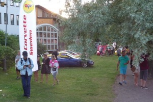Tillbaka på brottsplatsen brukar det ju heta. Riktigt så illa var det i alla fall inte på vår fina uppställningsplats vid Faluån. Däremot en och annan rykare på gatan från diverse konstiga fordon syntes under kvällen. Brott eller? Nytt rekord med 25 st Corvetter och en medlem i en turkos modell av Thunderbird (svårt att uttala) kunde vi räkna in. Janne Fryxell visade vad som fanns under huven och fick många att kolla på underverket. Dahlbäcks svarta monster drog också en hel del folk till sig. Det här är nog bland det värsta i Corvetteväg som är körbart på gatan, kul att vi har det i vårt vackra Dalarna.
