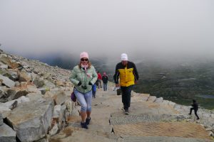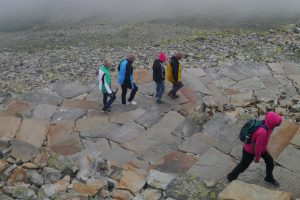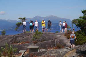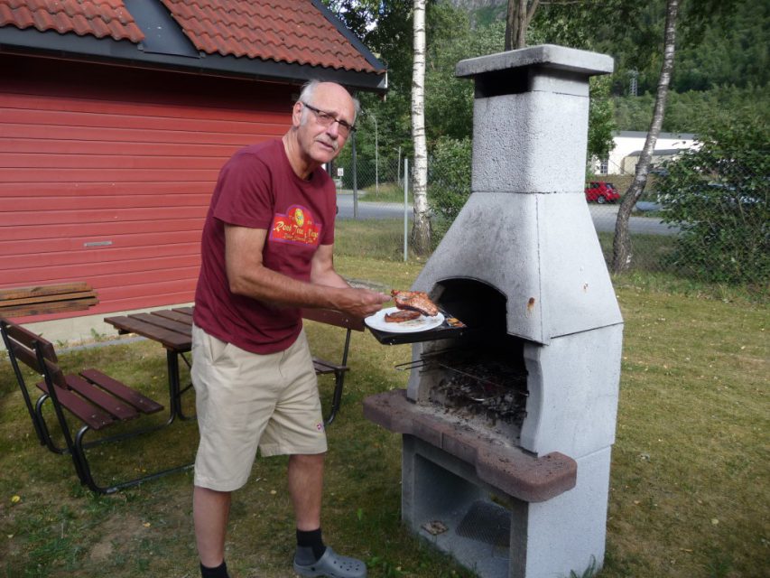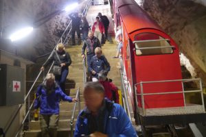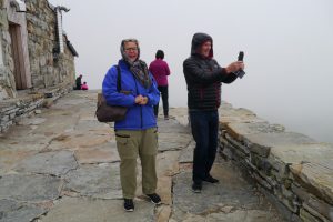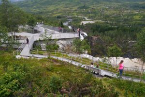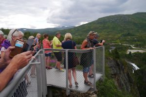 Rjukan har sina givna besöksställen som Wemork med tungvattnets historia. Den här gången var det ”Till Tops” som gällde med bestigning av södra Norges högsta berg, Gaustatoppen med sina respektingivande 1882 meter. Nu är det enkelt att komma till toppen med att åka tåg 800 meter in i berget och sen byta till en linspelsdragen bergbana på räls. Vi hade lite otur med vädret, bara några minuter efter att vi kommit upp så kom dimman indragande och det var bara 4 grader varmt. Vi sommarklädda i shorts och sandaler fick besöka caféhyttan med jämna mellanrum för att inte frysa. Hade det varit klart väder så skall man se till havet i söder och Svenska gränsen i öster.