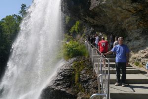 Nästa dag cruisade vi runt Hardangerfjorden. Ofta på vägar där bara en bil får plats åt gången är det spännande körning, hela tiden med utsikt mot vattnet så kan det knappast bli bättre. Två färjor och ett vattenfall, Steindalsfossen vid Norheimsund som man till och med kan gå under hann vi med.