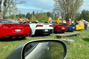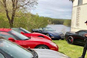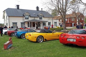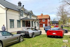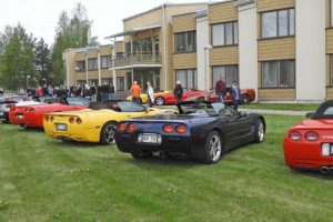Åter i Ockelbo parkerades bilarna omsorgsfullt på gräsmattan utanför äldreboendet som är vackert beläget vid Bysjön. I boendets rymliga samlingslokal serverades det hemlagad god lunch som följdes av det sedvanliga lotteriet med åror. De lyckligt lottade fick ta emot fina priser som Krister delade ut. Tanken med att förlägga bilträffen vid äldreboendet var att de äldre generationerna också skulle få glädjas åt de blänkande Corvetterna.