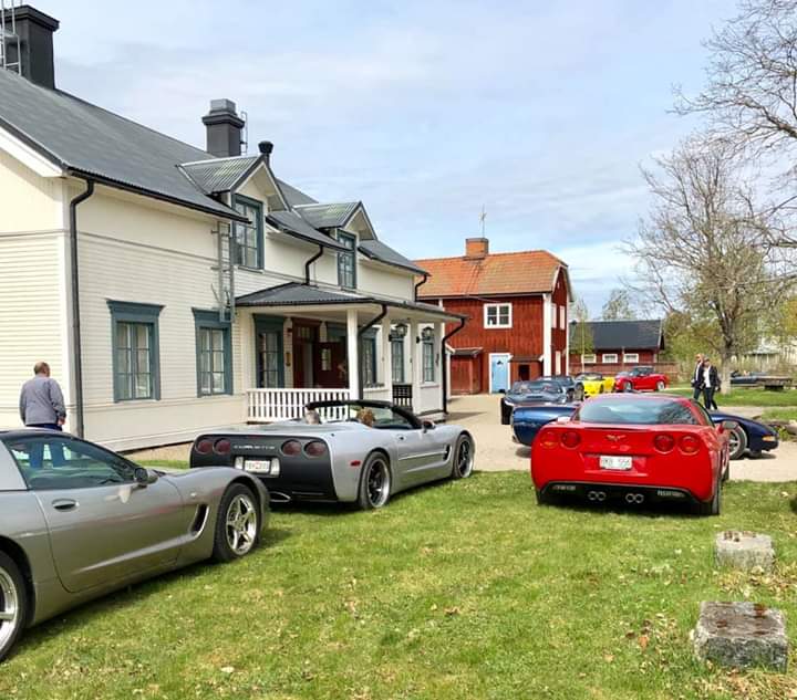 Kaffet intogs i trädgården där vi fick njuta och koppla av till fågelkvitter vid sjön och sedan minglades det glatt bland Corvetterna innan vi for vidare på ytterligare fem mils cruising.