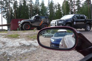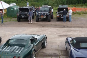 Låg möter hög kan man nog påstå. Min C5:a har en markfrigång under spoilern på 5 cm och dessa monster till bilar har som lägst 30 cm under axlarna. Man kan nästan köra under med Corvetten, så höga är dom. Vi besökte denna lördagsutflykt Säters MK motorbana i Aspnäs och Off-Road gänget.
