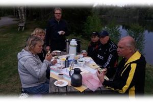 Färden gick vidare till Fänforsen i Björbo där vi dukade upp fika vid älvstranden. Inramningen med bilarna och älvens vatten är magnifik, en och annan mygga försökte störa oss utan att lyckas nämnvärt. Det blev en mycket trevlig fikastund innan vi skiljdes och var och en åkte hemåt.