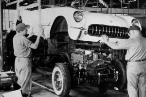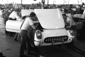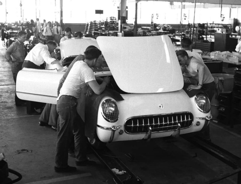 Den allra första Corvette som någonsin byggts var en General Motors Motorama utställningsbil som först ställdes ut på Waldorf Astoria den 17.e januari 1953. Den blev en omedelbar hit och den första tillverkningen av Corvette byggdes den 30 juni 1953 i Flint, Michigan och endast 300 byggdes, praktiskt taget för hand och allt på en pilotlinje. Detta första års Corvette var endast tillgänglig i Polo vit med röda inredningsdetaljer. Corvette är ju lika amerikanskt som ”Hot Dogs, Baseball och Apple Pie”.