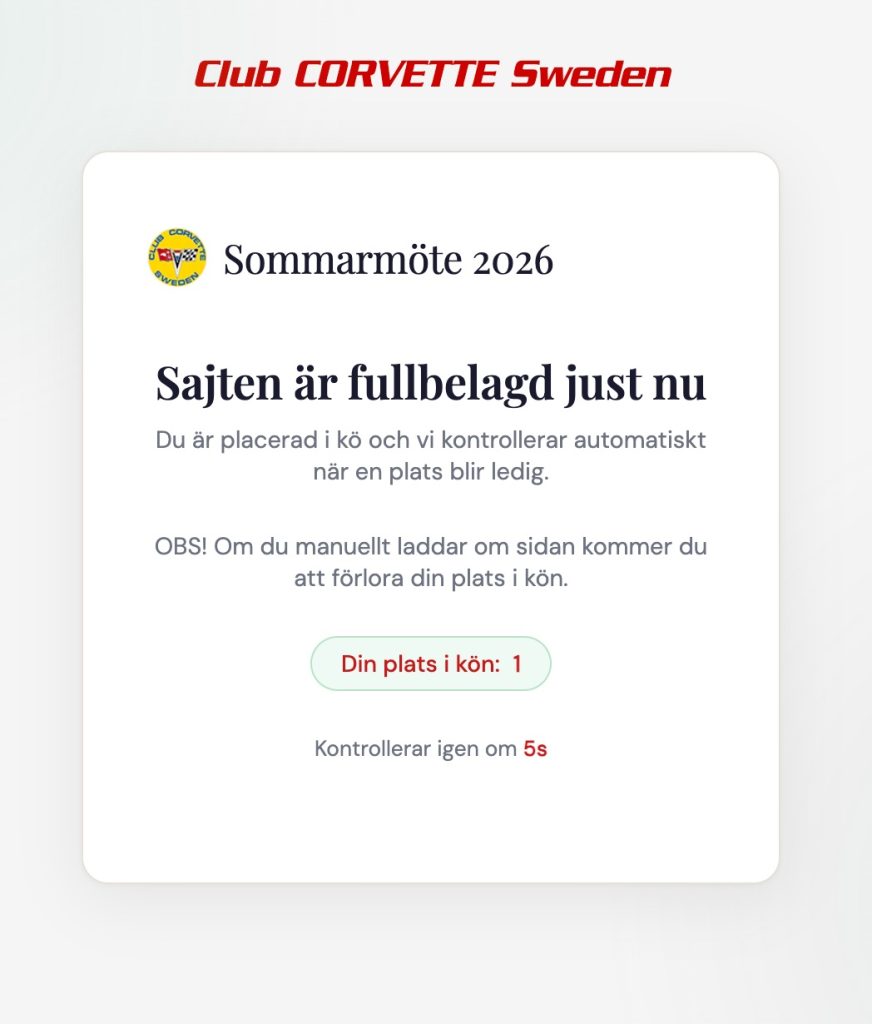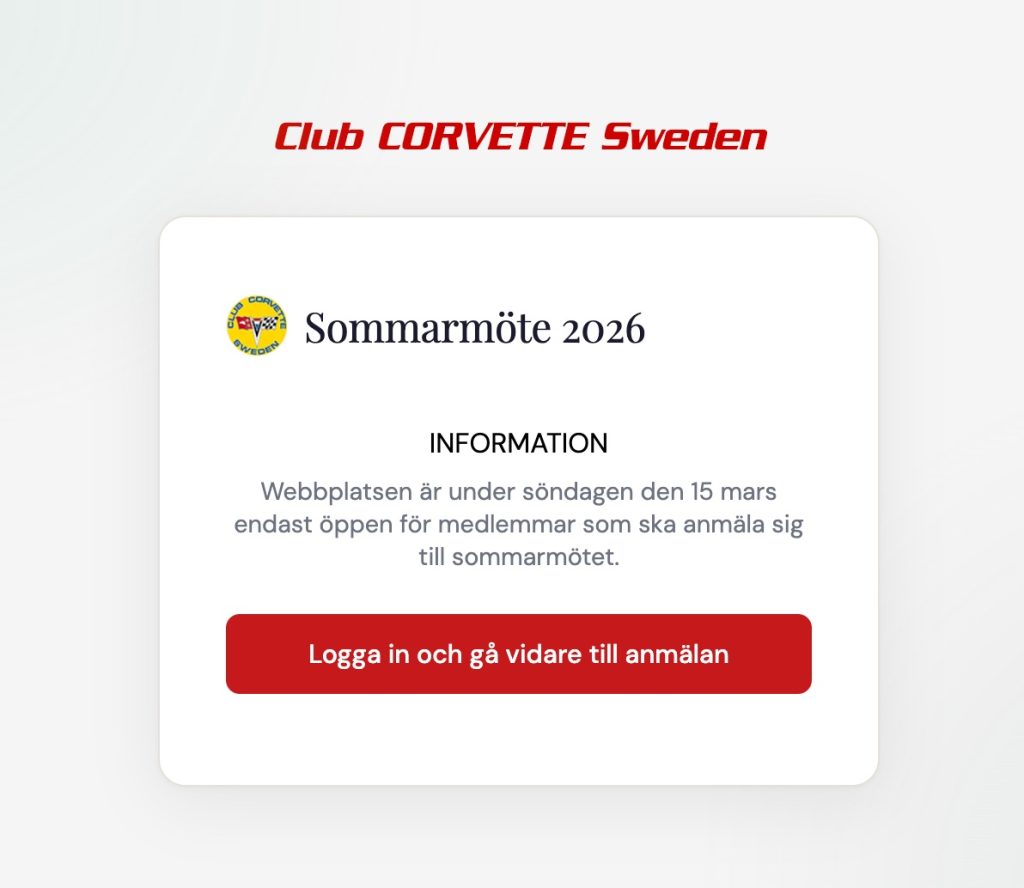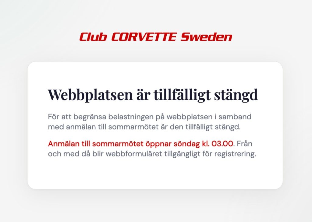 Från lördagkväll kommer hela clubcovette.se gå in i ett vänteläge och alla som kommer hit kommer att mötas av nedanstående meddelande till vi öppnar upp anmälan.