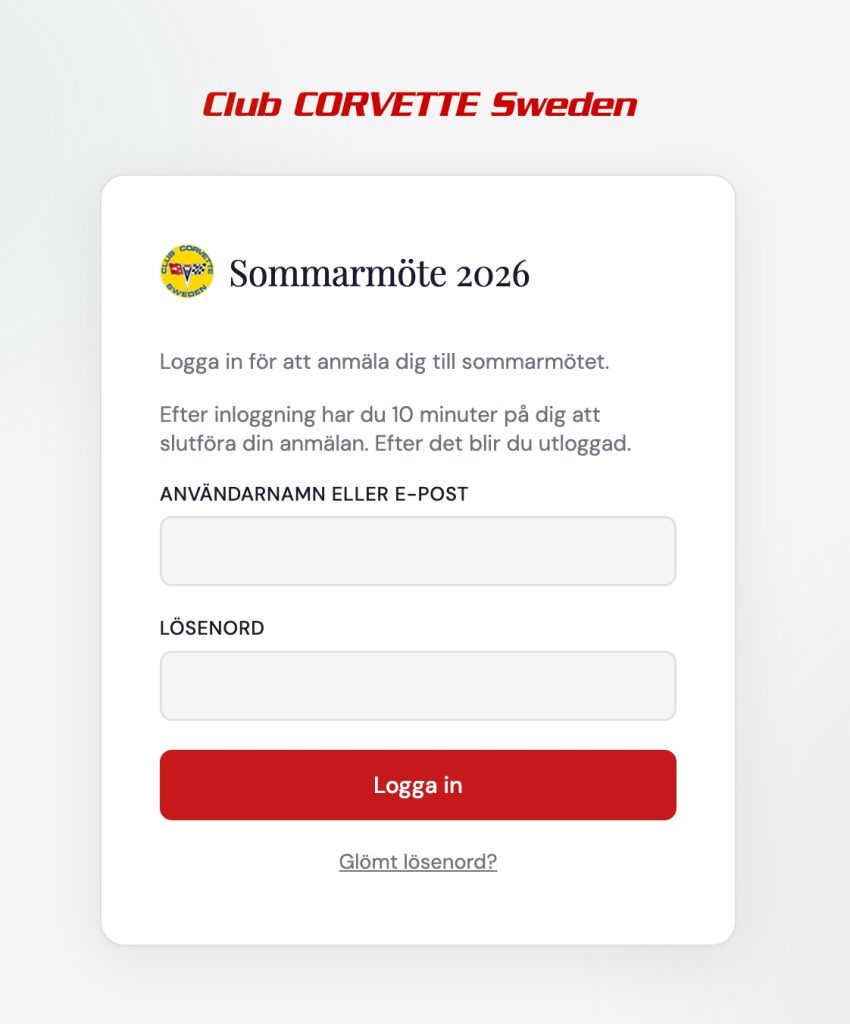 Där kan ni då gå vidare till inloggningssidan. Finns det en ledig plats, kan ni logga in som vanligt. Ni har då 10 minuter på er att fylla i anmälan och skicka iväg den.