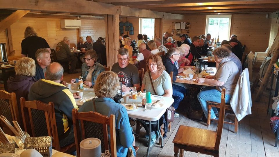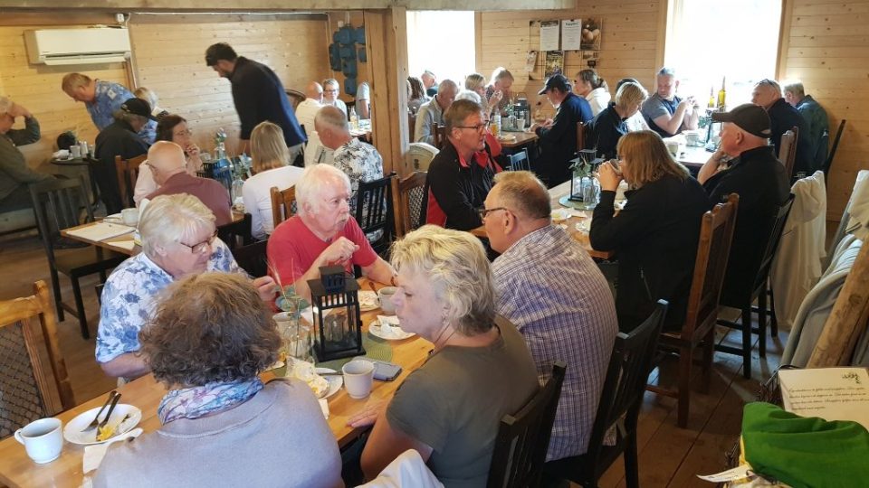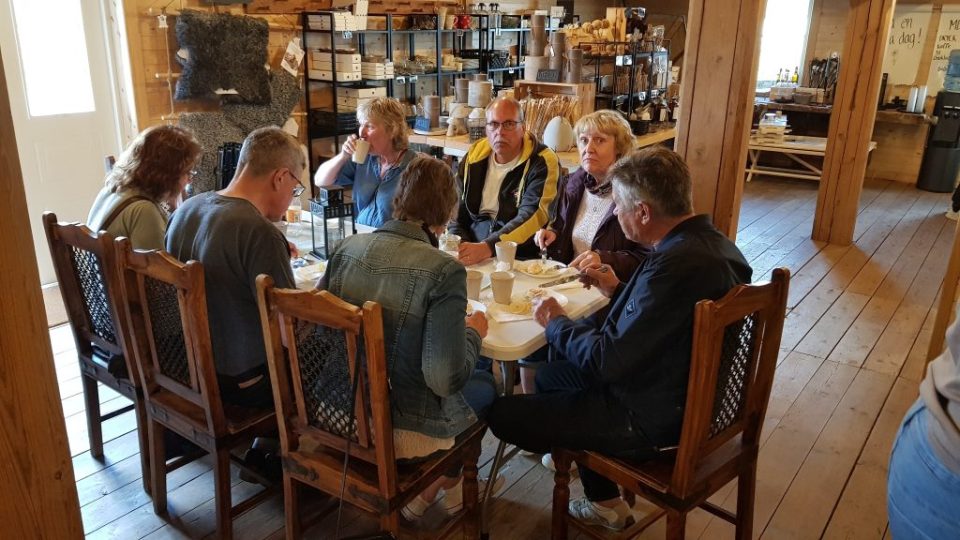Där serverades oss goda Räksmörgåsar och gobitar till kaffet. Där kunde man även passa på att handla många av deras fina egenproducerade produkter. Bl.a. deras ägg är välkända som mycket goda.