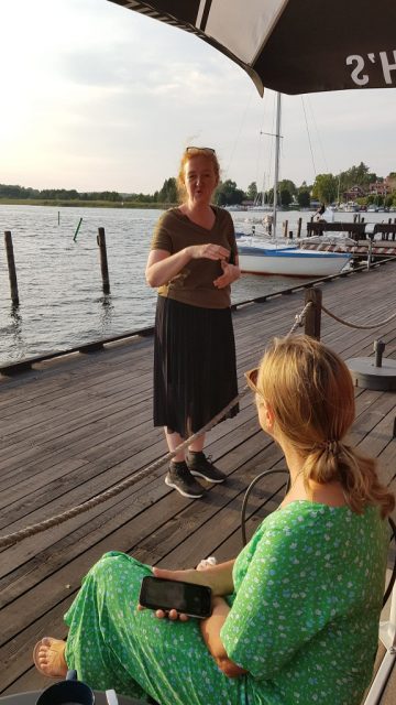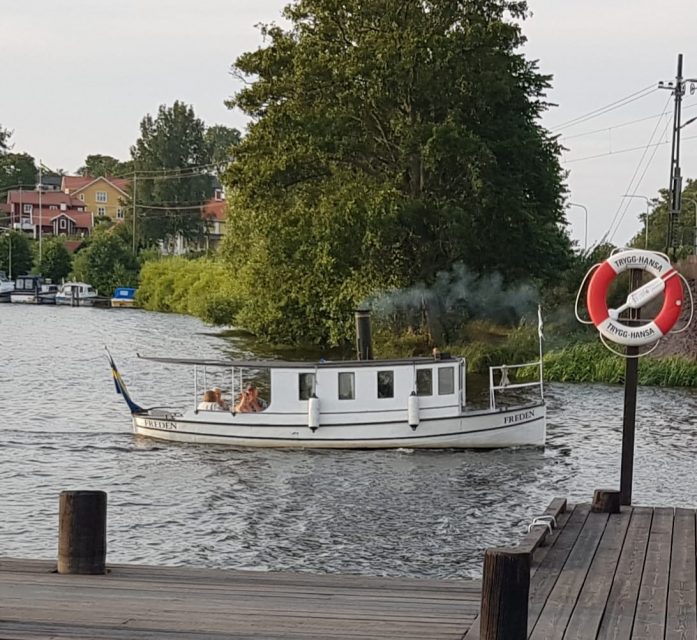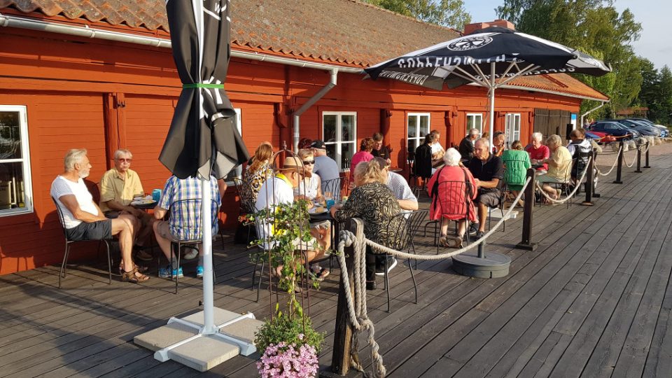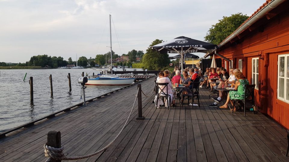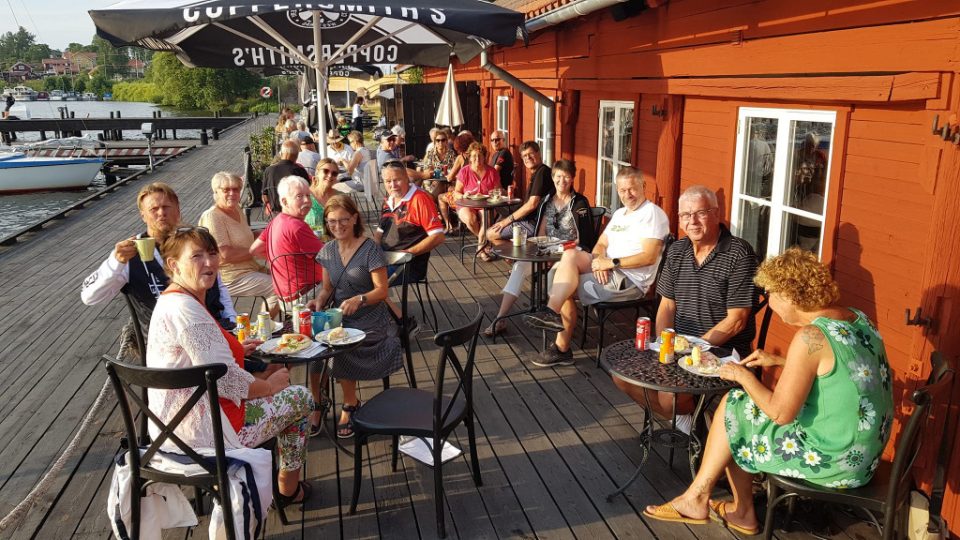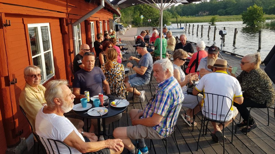 Den här onsdagen gick färden till jättemysiga cafét vid Borgåsund som ligger underbart vid Mälarens vatten. Det blev en perfekt kväll med kvällssol och vindstilla på kajen där vi fikade våra goda räksmörgåsar.