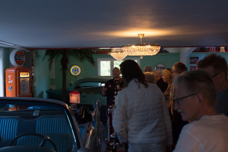 Framme vid museet möttes vi av Leif-Ivan Karlsson (skaparen av samlingen) när alla bilar var parkerade framför museet delades vi upp i två grupper för guidad tur av bilsamlingen. Efter guidningen var det Kaffe med fikabröd och fri vandring i museets tre plan. Det finns ett 100-tal bilar där de flesta är till salu, bilarna är från 50 och 60-talet. Förutom bilarna finns det mycket smått och gott att se.