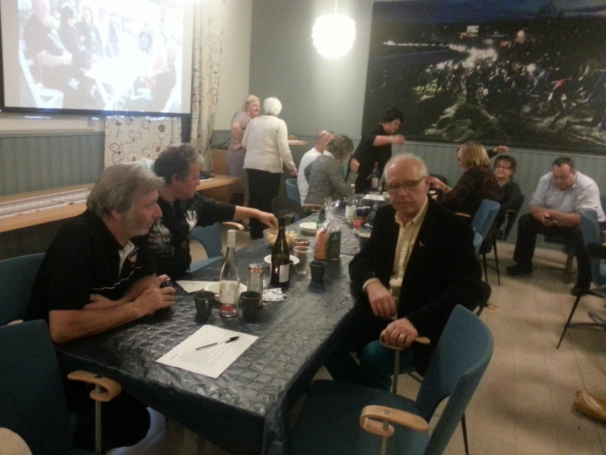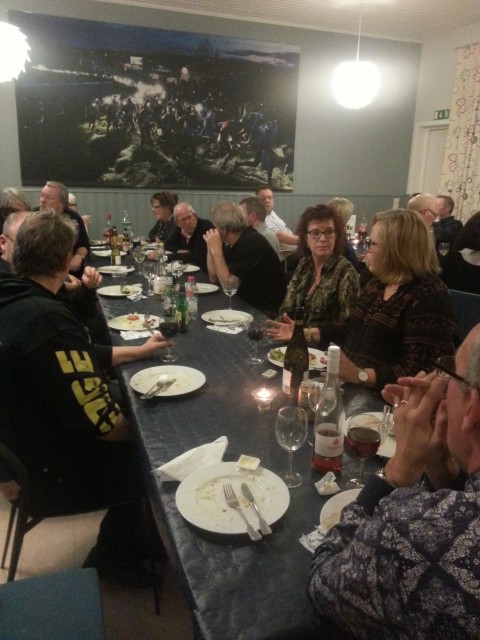 29 glada medlemmar samlades för att avnjuta en god buffé och ett glatt umgänge. I takt med att innehållen i glasen sjönk steg ljudvolymen i lokalen och humöret var på topp. Jag hörde flera olika historier på temat stor, större, störst och hörde från ”säker” källa att det fanns en Vasaloppsvinnare i lokalen… Eller i alla fall en namne till en. 😛 Roligt var också att vi hade två helt nya deltagare på plats – hoppas ni inte blev avskräckta Karin och Lars!
