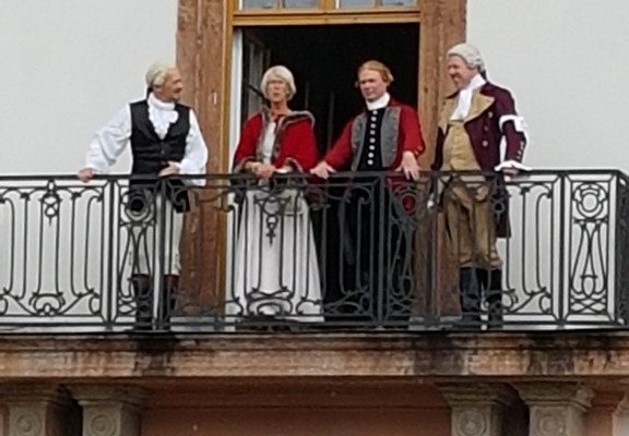 Nästa stopp var det gustavianska Ljungs Slott från 1700-talet, byggd av Greve Fredrik Axel von Fersen den äldre. Där visade personalen upp sig ute på balkongen i tidsenlig klädsel. Ägs nu privat men visas sommartid av Föreningen Ljungs Slotts bevarande.