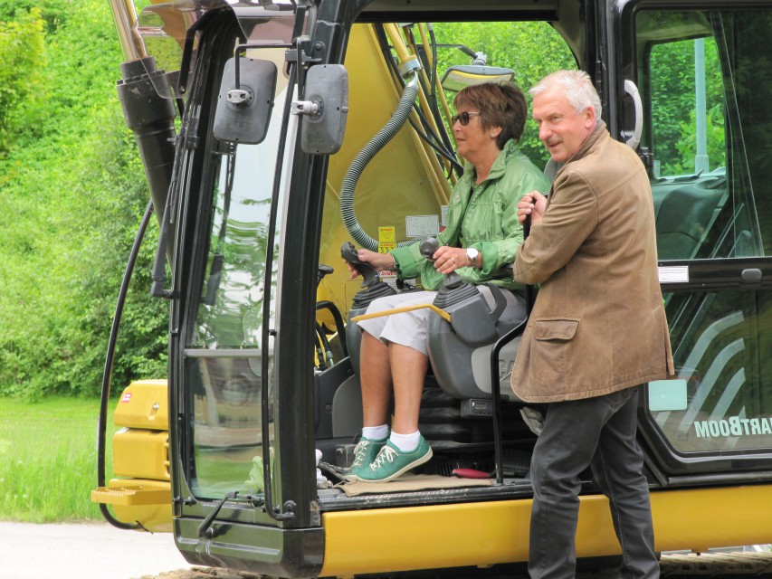 Sedan hade vi en tävling för alla kvinnor som ville prova på att köra grävmaskin. Det var först att kasta en boll i en hink med skopa och sedan trycka ner en pinne med en tjälkrok. Skeptiska miner förvandlades snart till förtjusta leenden och kanske har vi snart fler kvinnor som ger sig på detta mansdominerande yrke.