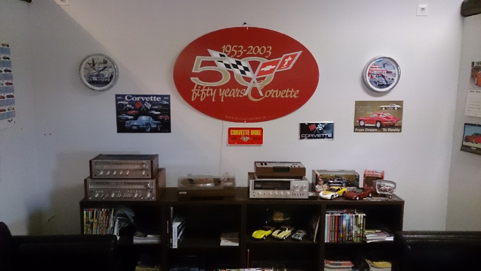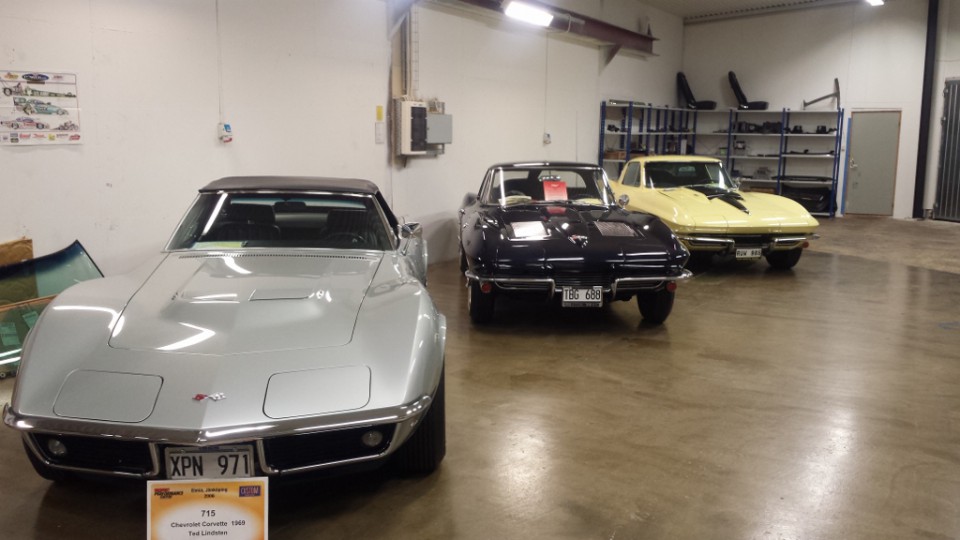 Teds garage är av den där sorten som får oss vanliga dödliga att börja mumla osammanhängande med något drömmande i blicken. Förutom en trevligt inredd samlingslokal finns stor och välutrustad verkstad, oändliga förvaringsutrymmen och en stor ljus lokal för de körbara bilarna. Ted gillar inte bara Corvette utan har också en förkärlek för gamla amerikanska muskelbilar såsom AAR Cuda, Challenger R/T och Superbird. Pappas gamla trettiotals-Cord finns också i samlingen, en mycket ovanlig bil med en del spännande konstruktionslösningar såsom uppfällbara strålkastare och framhjulsdrift. Ted pratar dessutom gärna och länge om sina bilar, så klockan blev mycket innan det var dags för hemfärd.