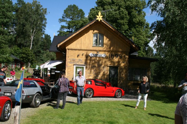 Nästa stopp var vid Byringe Station. Här tog vi ett hopp tillbaka i boken där Allan klivit av bussen och kommit fram till ett hus och första gången mötte Julius. Rolf och Christina, som bor i huset, gav sin berättelse om både lugnet innan och uppståndelsen efter boken skrivits. Vi skrev i deras gästbok och gav oss i lag med 2 frågor till.