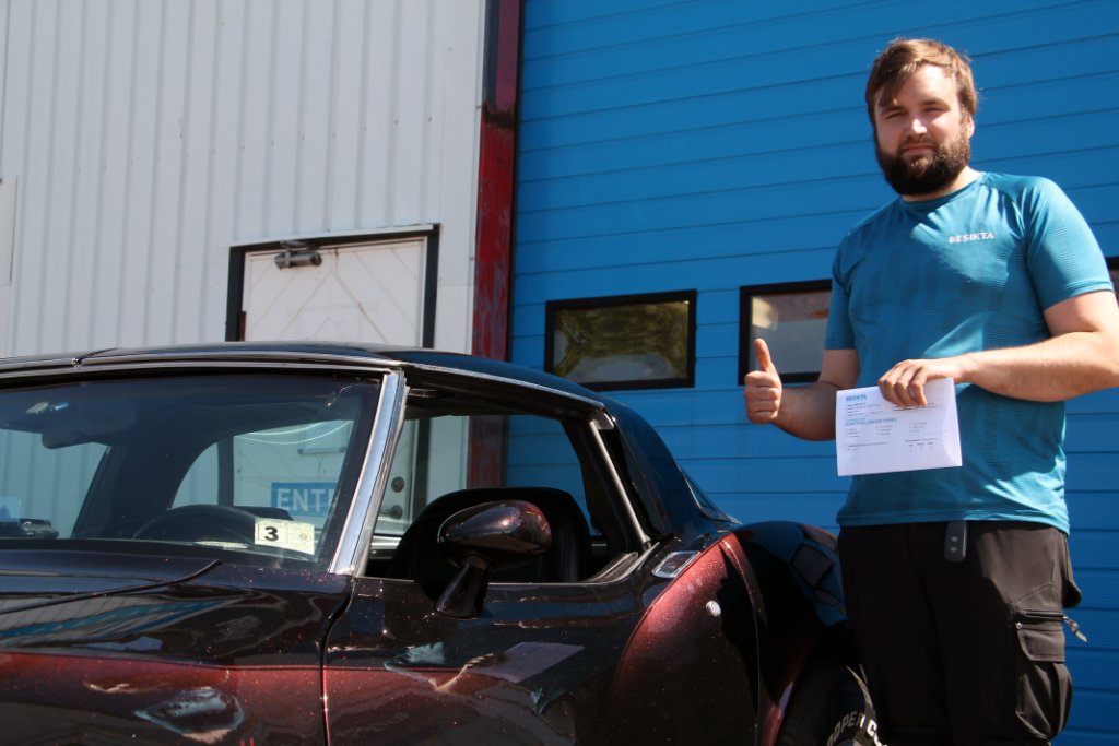Då var näst sista besiktningen klar och som ni ser så blev det tummen upp av besiktningskillen.